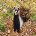 YS-23-141-1_在开阔草甸的洞穴旁,一只艾鼬正探出身子。它皮毛棕黑交错,圆耳、短肢,在自然环境里,展现出灵动又警觉的模样,作为鼠类天敌,默默守护生态平衡,是荒野里独特的小生灵