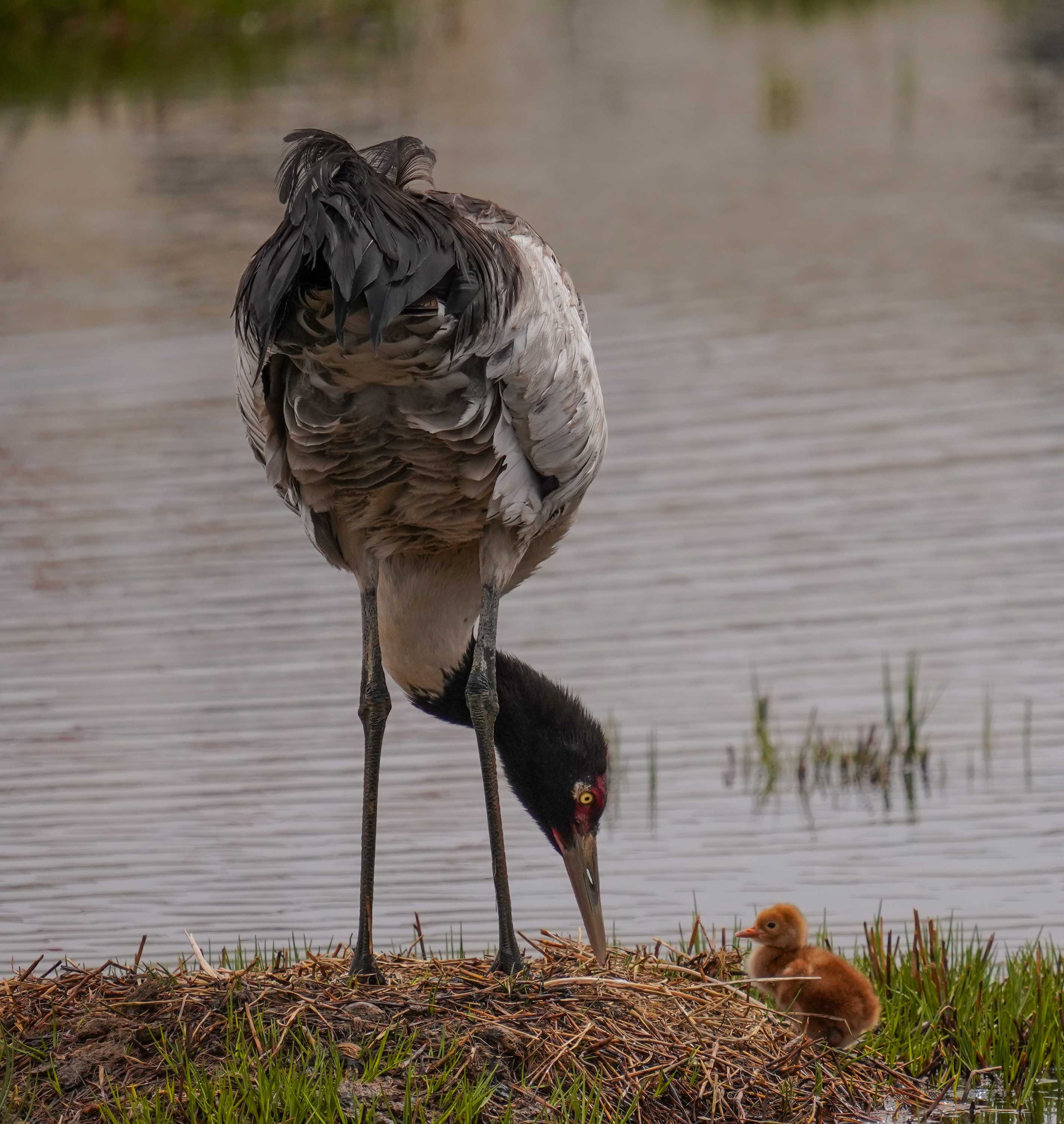 2025年6月25日,申扎湿地黑颈鹤父子凝眸深情。