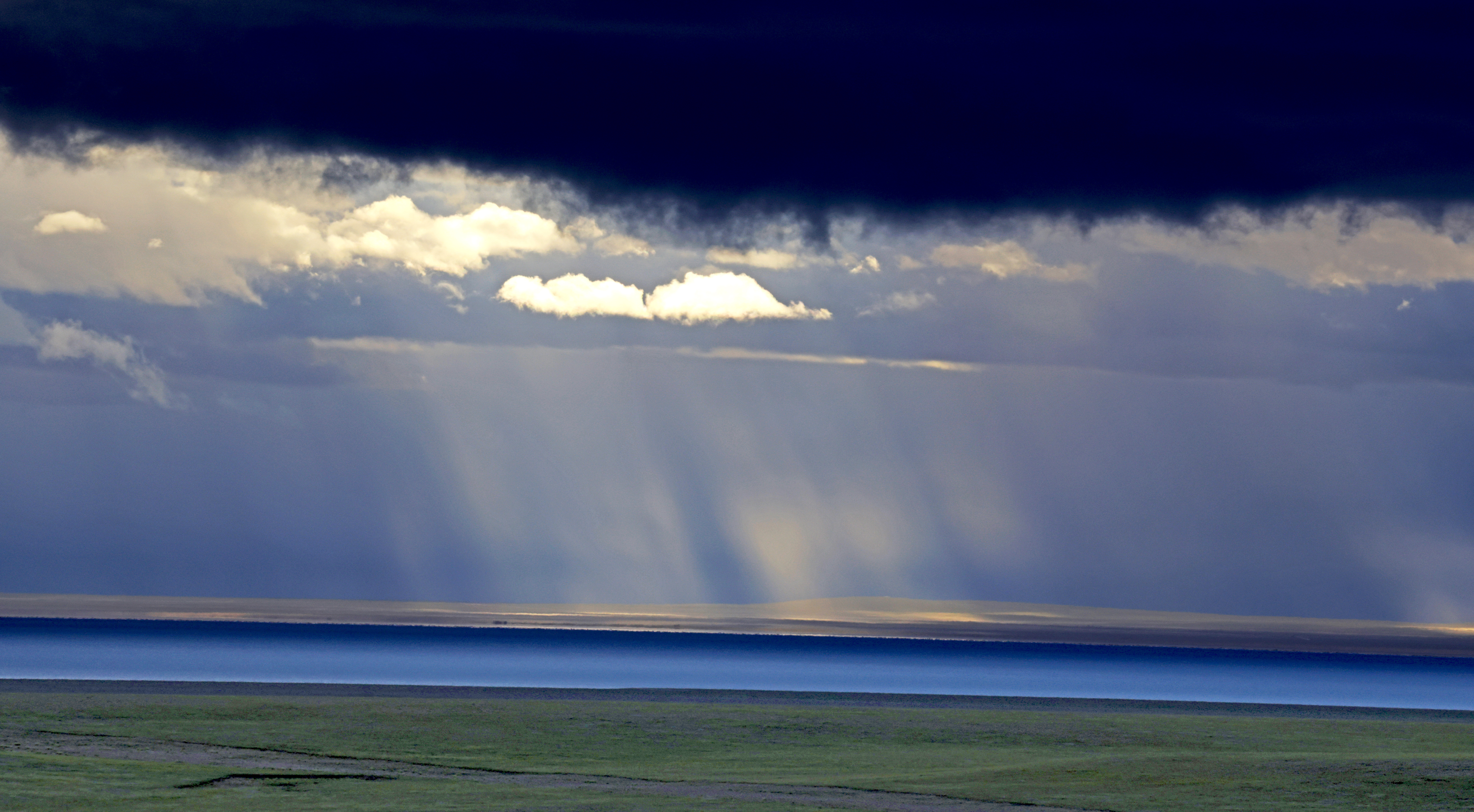 YS-23-30-1_2024年8月26日,西藏那曲市申扎县境内;一束光穿过云层帘照在湖面。