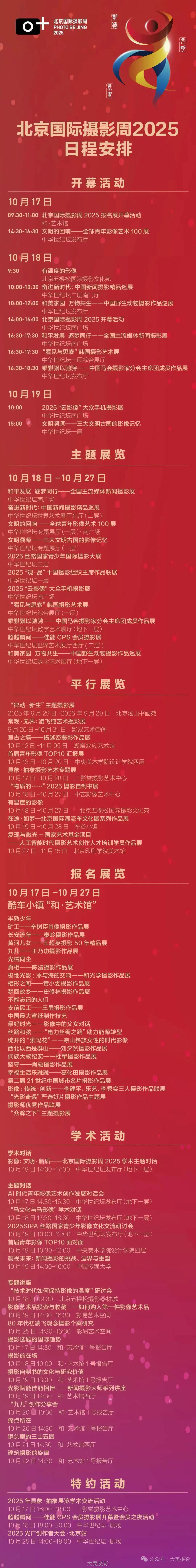 10月19日上午10时,北京国际摄影周2025“云影像”大众手机摄影展开幕式将在北京中华世纪坛南广场举办。