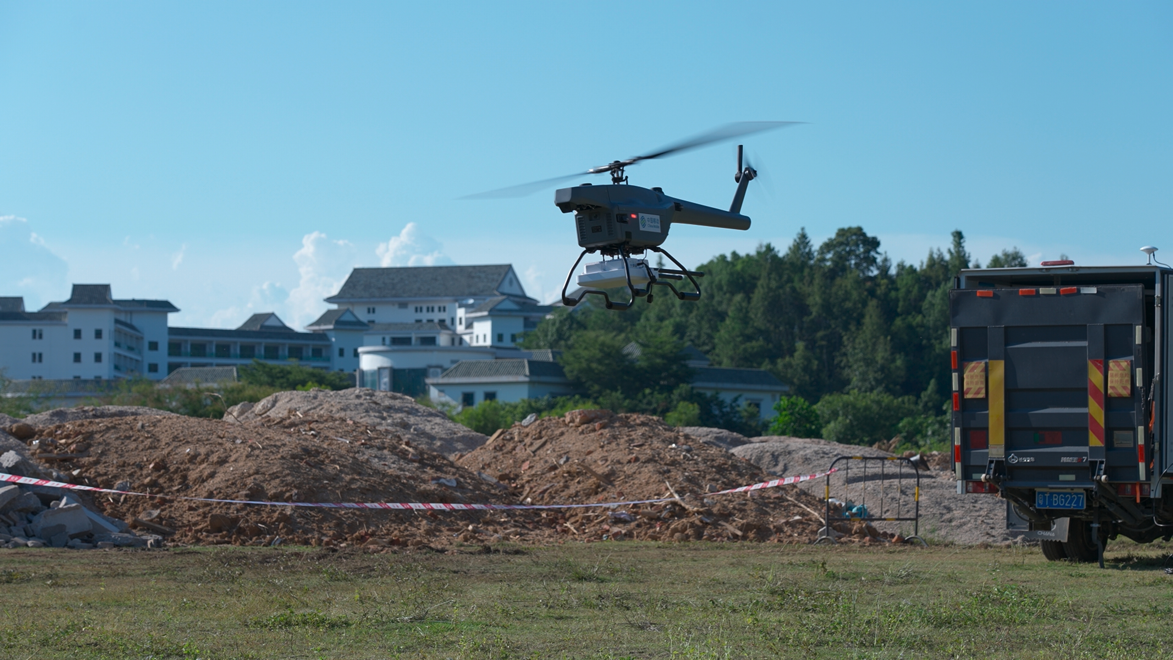 素材描述:单兵背负式无人直升机、水陆两栖全地形车、动中通卫星车……各类硬核装备轮番上场。在广东河源,中国移动广东公司全程参与本地汛期“三断”突发事件应急通信保障专项应急演练,实操检验抢险队伍在极端环境的应急通信保障能力、复杂场景下核心业务恢复能力。除了新型抢险装备展示,参演人员迅速响应,精准高效地完成了卫星包开通、无人机抛投、移动-电力纤芯联合调度等任务,为今后应对类似突发事件积累了宝贵的实战经验。