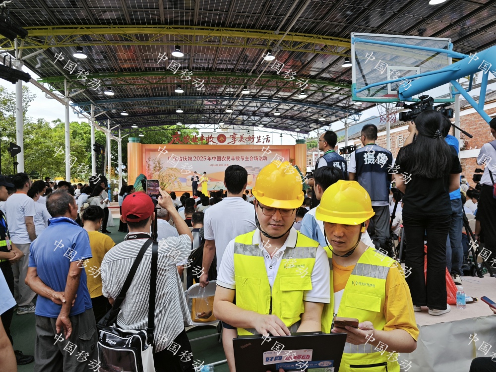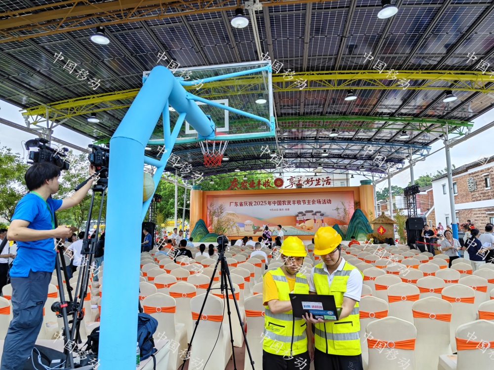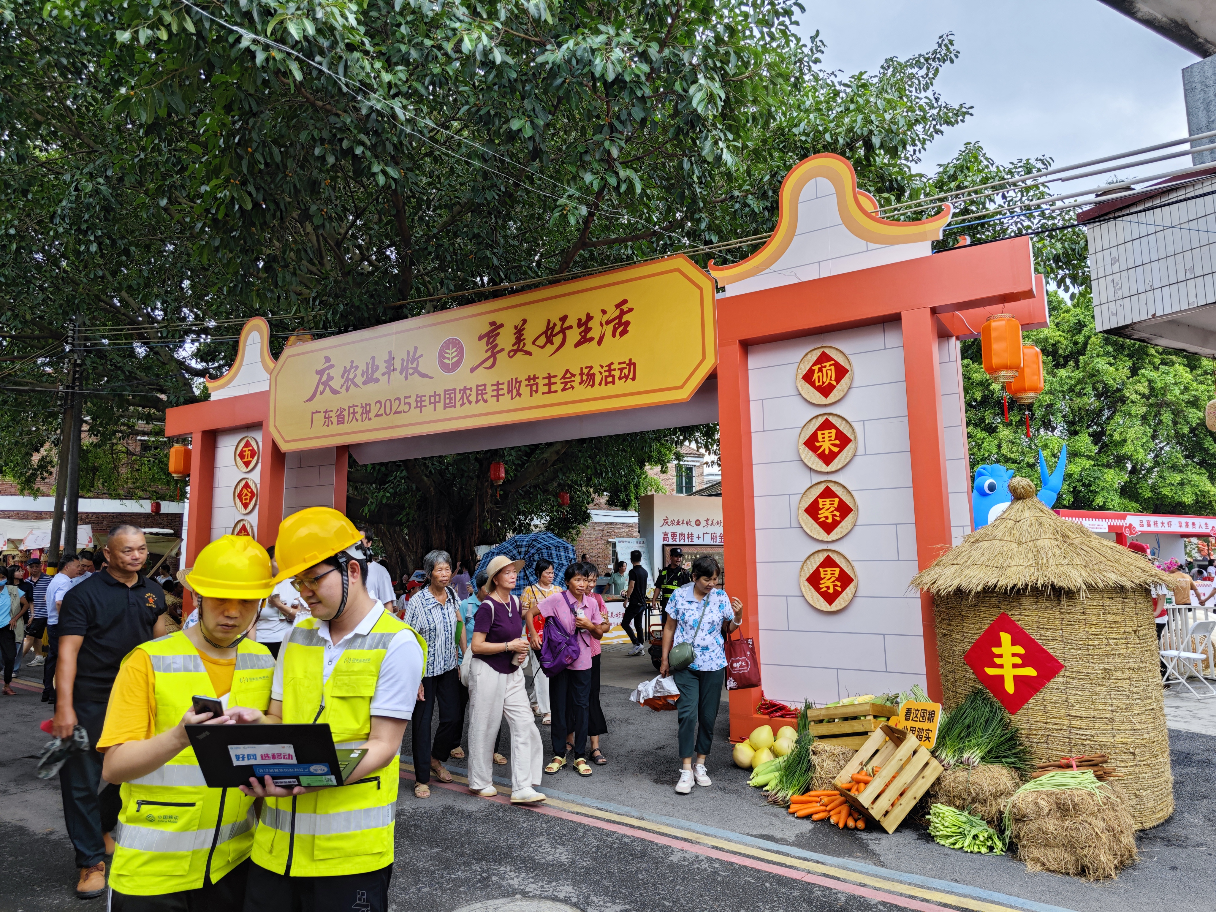 素材描述:“庆农业丰收,享美好生活!”秋高气爽,广东省庆祝2025年中国农民丰收节主会场活动在肇庆市高要区金渡镇铁岗社区举行,活动全方位展现全省上下实施“百县千镇万村高质量发展工程”以来的农业发展新成就、农村面貌新变化、农民生活新图景。中国移动广东公司提前部署,对活动现场开展网络保障工作,重点针对主舞台、摊位进行现场值守,以优质网络服务守护丰收喜悦。