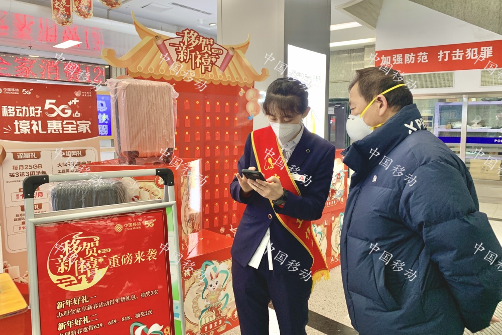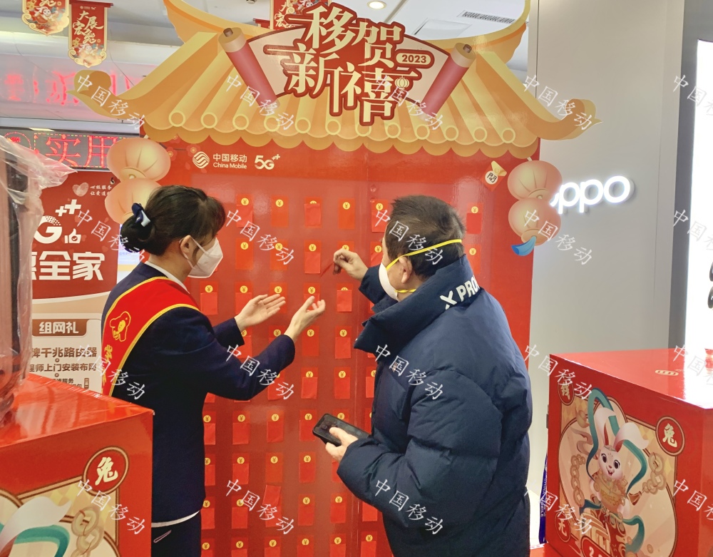 素材描述:2023年1月,在兔年新春佳节来临之际,中国移动抚顺分公司公园营业厅开展了多种多样的迎新春便民优惠活动。通过办理各类新春优惠活动可参与抽奖这种新颖的活动形式,在提升移动业务多元化的同时,也给众多客户带来了实惠。在活动中,公园营业厅主打“真诚服务,用心追求”,根据每位到厅客户的使用需求和过往业务数据进行系统分析,制定个性化套餐,使客户实现省钱、省心、效果好的目标,提升了用户现场办理业务的体验感和对移动品牌的归属感。
