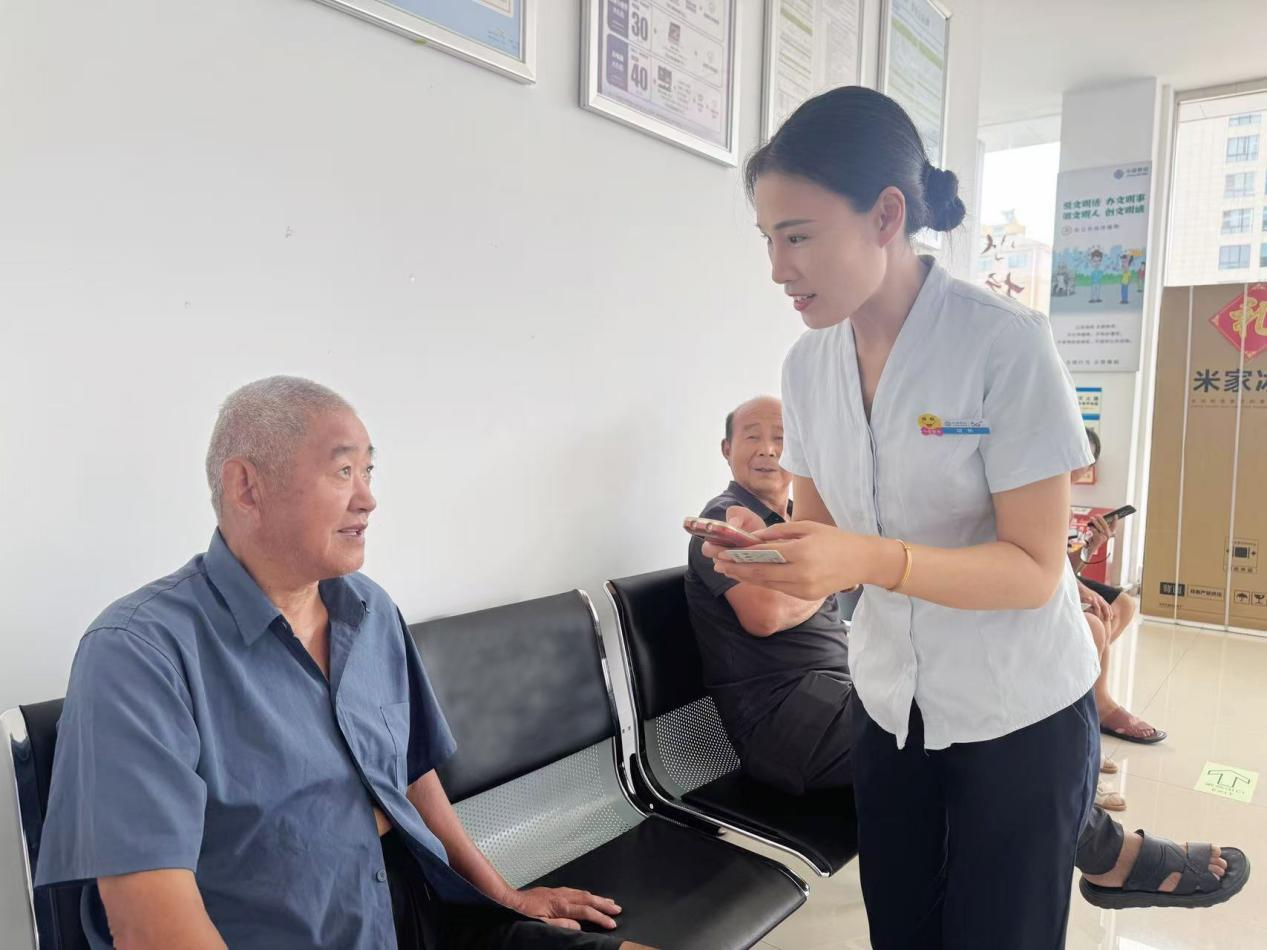 素材描述:营业厅工作人员正在为老人讲解手机设置