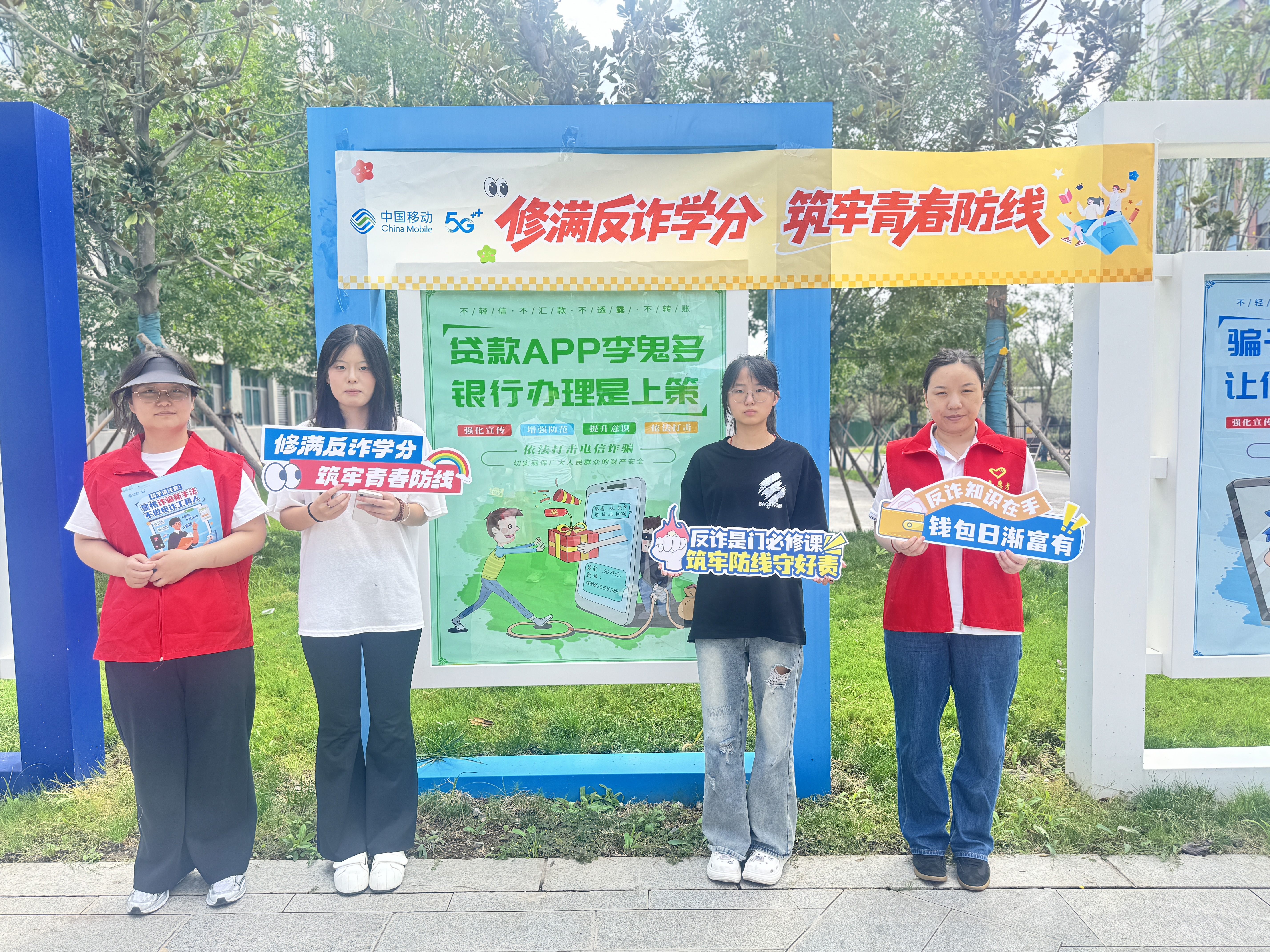 素材描述:图为安阳移动林州分公司志愿者在校园与学生共同开展反诈宣传-李彦玮-摄