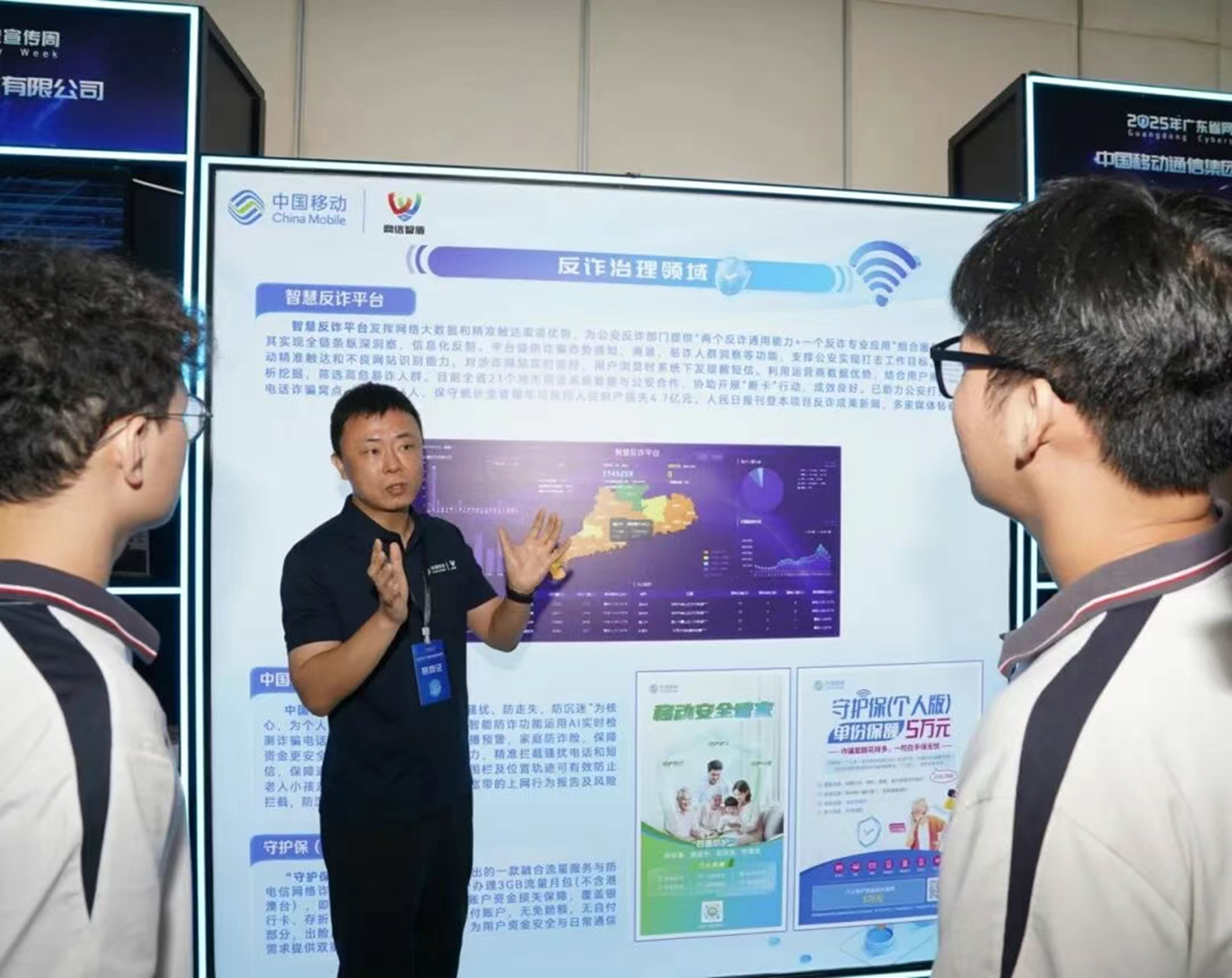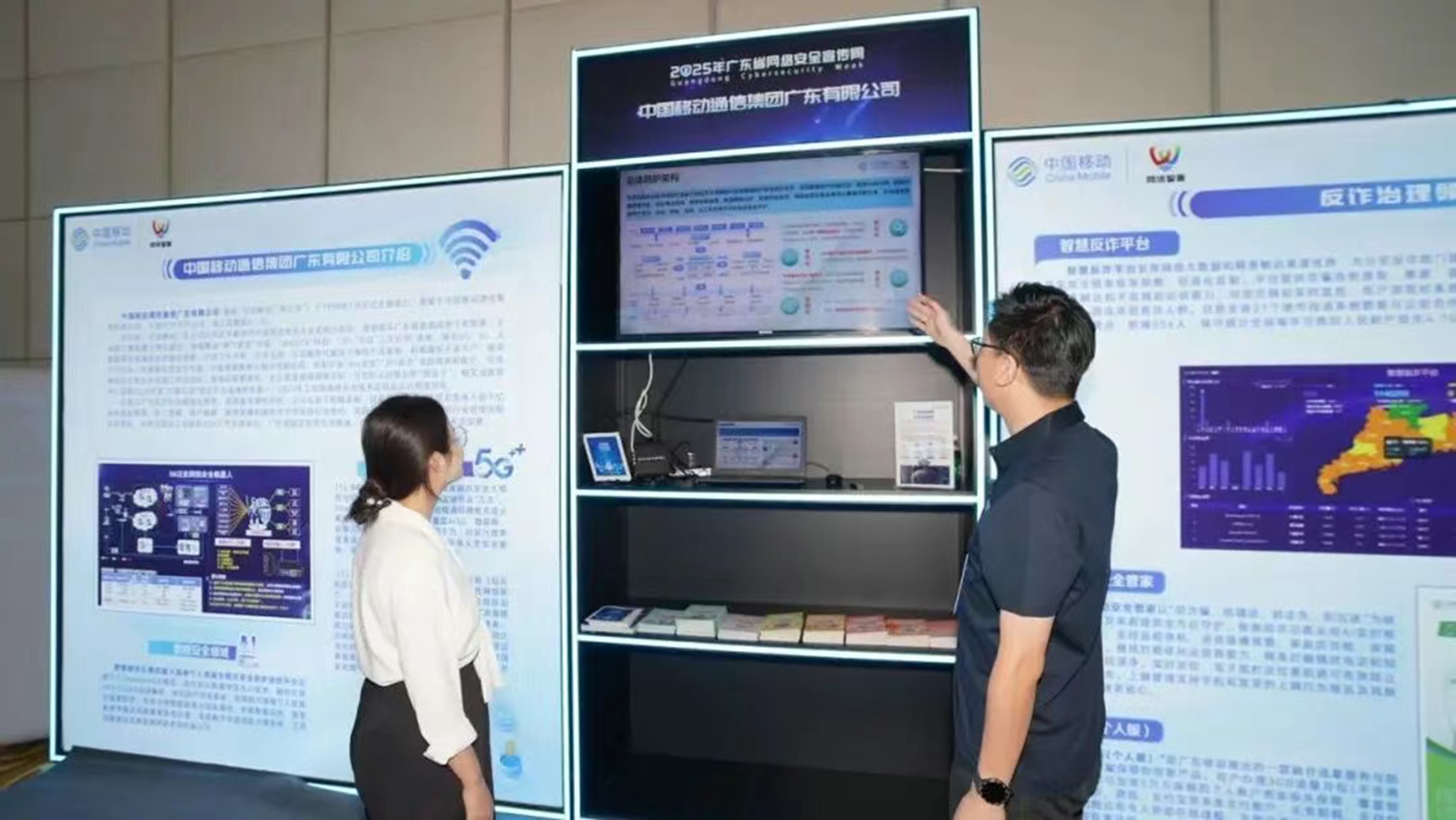 素材描述:9月15日至21日,2025年广东省网络安全宣传周活动在珠海举行,聚焦网络安全技术项目和网信人才供需对接,并通过线上线下结合、多渠道发力的方式开展立体宣传,让网络安全理念深入人心。中国移动广东公司携一系列创新产品和解决方案精彩亮相,重点展示智盾新一代流量防护产品、5G泛在网信安全机器人、智慧反诈平台、移动安全管家、超大规模个人信息全链式安全防护信创平台等五大核心产品与服务,与众多行业领军企业共探网信安全的前沿技术与发展趋势。