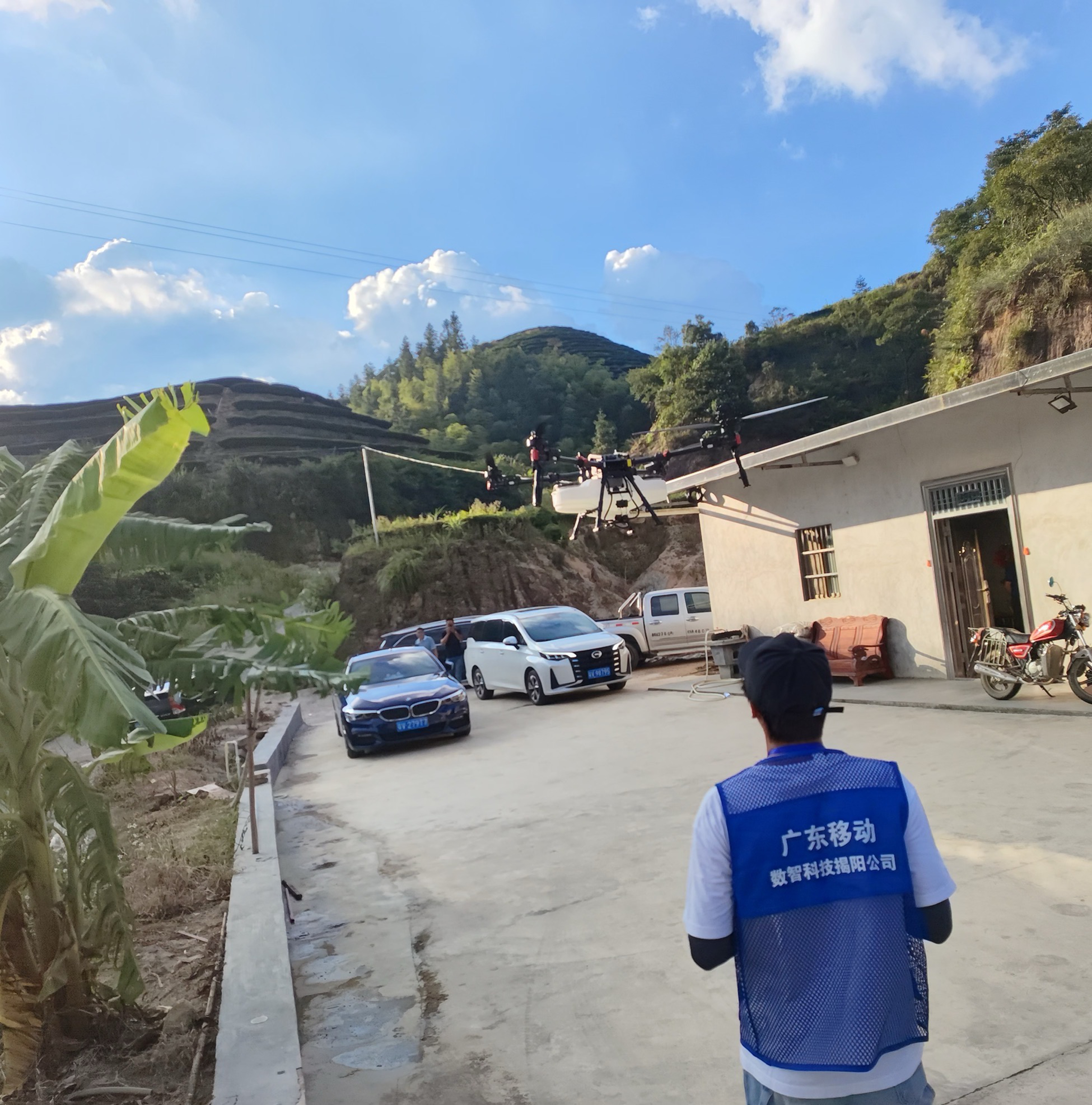 素材描述:“以前人工打药不仅成本高、效率低,还很难喷匀。现在用无人机,又快又好,省力又省心!”在揭阳揭西坪上茶园,茶园承包商欣喜地说道。由中国移动广东公司提供的无人机飞防服务正在茶园高效开展,无人机在技术人员的精准操控下,沿着茶垄匀速飞行,将雾化肥药均匀地喷洒于翠绿茶园中。除了可以克服复杂地形限制,大大提升作业效率,有效保障千亩茶田植保需求外,无人机依托GPS定位与智能航线规划,实现定高、定速、定量精准喷洒,大幅减少肥药用量,降低土壤污染与药物漂移,助力生态茶园绿色转型。此次无人机飞防技术的推广应用,是中国移动广东公司依托数字化技术助力构建现代化农业服务体系的生动缩影,既为当地茶农带来了实实在在的科技红利,也显著提升农业防灾减损能力,加快农业生产方式由“人力主导”向“科技驱动”转变。