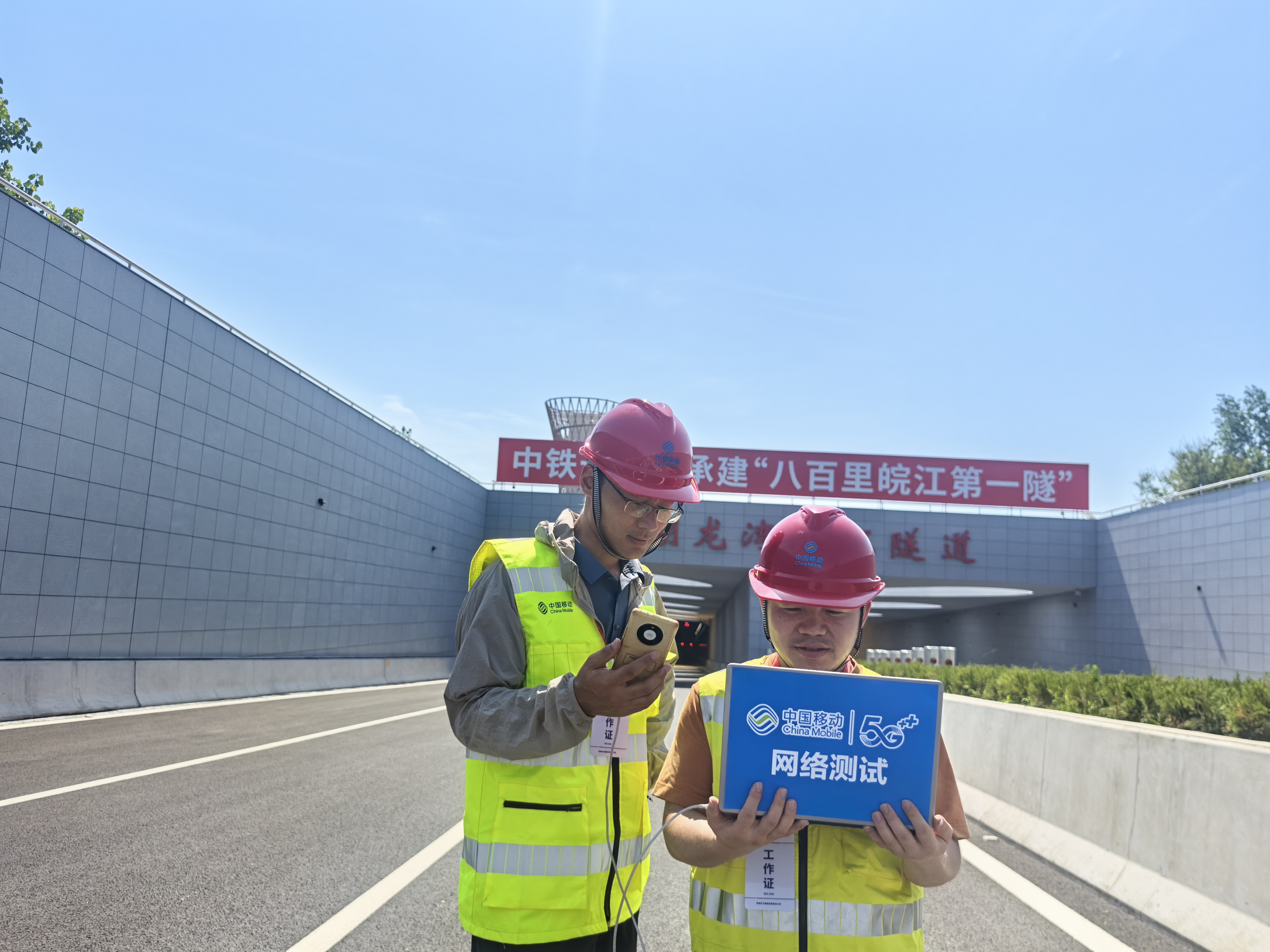 素材描述:在芜湖,安徽移动技术团队迎难而上,通过定制化防水设备、耐高温线缆,完成了72芯过江隧道光缆的布放,在狭窄的隧道壁上精准安装 22 台 5G 设备、10 台 4G 设备,实现隧道内 4/5G 信号全覆盖。