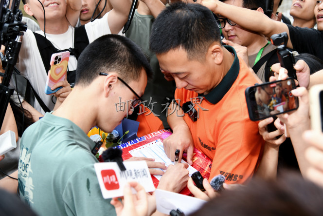 素材描述:7月8日9时30分,四川省首份高考录取通知书从四川大学录取现场发出,投递至考生指定地址(大图)。当天18时45分,北京市第一封普招高考录取通知书在北京语言大学现场打印,北京邮政特别选派了全国五一劳动奖章获得者史春华承担投递任务(小图)。四川、北京首封高考录取通知书的安全送达,标志着中国邮政2024年高考录取通知书寄递工作正式拉开帷幕。 为做好今年的高考录取通知书寄递服务工作,邮政部门提前制定工作预案,全环节开辟“绿色通道”,制定了“十七项确保、十六项严禁”寄递服务措施,对高考录取通知书邮件全程实施单独、优先处理,封装环节实施全程视频监控,使用特制专用封套、专用袋牌等特殊标记进行封装;同时,全部按照特殊安全需求邮件进行处理,并配备主动客服,确保每一份高考录取通知书都能及时、准确、安全送达。