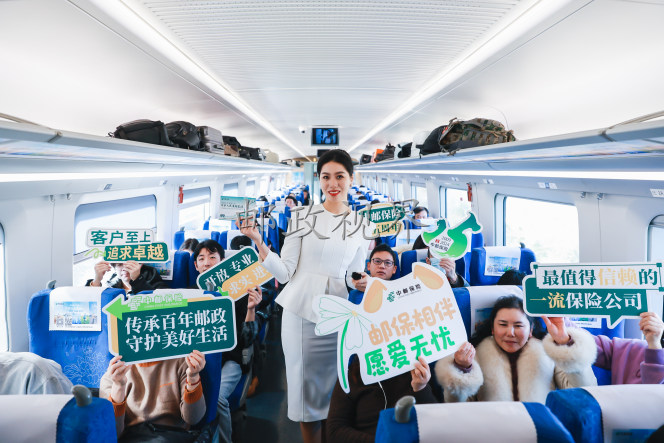 素材描述:12月20日,中邮保险在江苏南京南站举办了高铁冠名专列首发仪式,并在冠名的高铁品牌列车上开展了“情满江苏 服务万家”金融消保知识问答活动。活动中,中邮保险特邀主持人向乘客介绍了中邮保险的综合实力与优质服务,中邮保险工作人员围绕金融消费者权益保护,与乘客进行了趣味有奖问答互动,并邀请乘客扫描二维码,关注中邮保险微信公众号,观看《大国保险》普惠促进城乡融合暨中邮保险专题片。此次活动为乘客们增添了旅途的乐趣,也进一步传播了中邮保险“邮保相伴 愿爱无忧”的品牌主张。